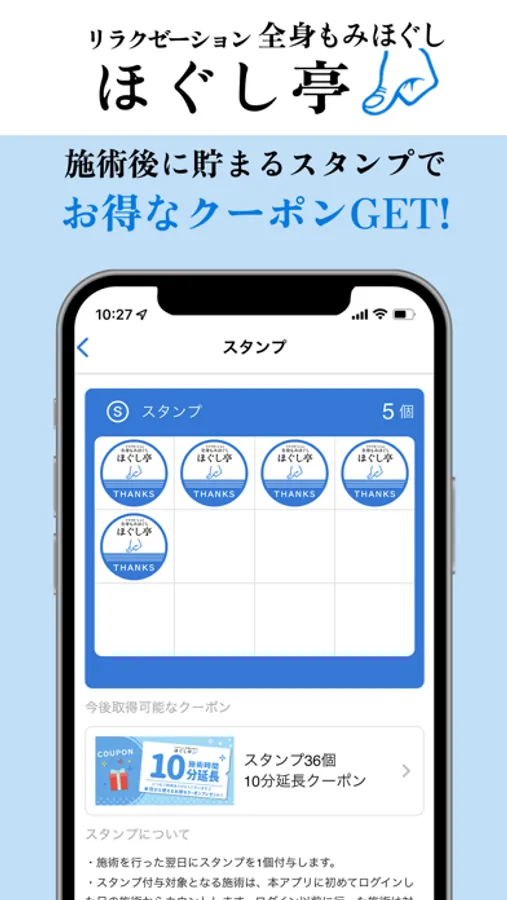 ご来店スタンプをためるとお得なクーポンが発行されます(ご利用条件がある場合がございます)