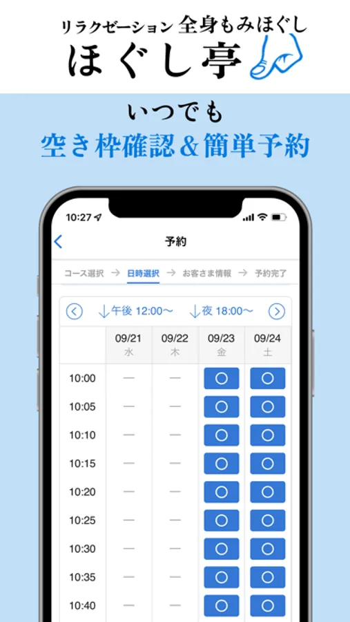 いつでもお手元のスマートフォンからご希望のお時間帯のチェック・ご予約が可能です。