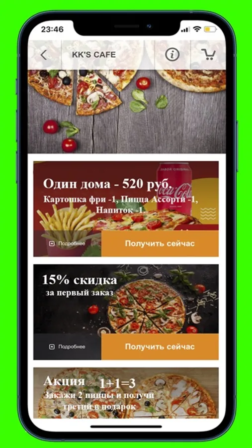 - в зависимости от местоположения приложение автоматически отображает ресторан (ы), в котором вы заказываете