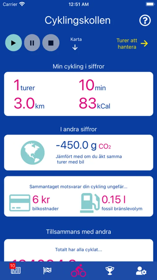 Utmana dig själv och skapa nya hållbara vanor i cykelutmaningar. Ladda ner appen och bidra till både bättre cykelvägar och minskade koldioxidutsläpp i framtiden. Ställ bilen och ta cykeln!