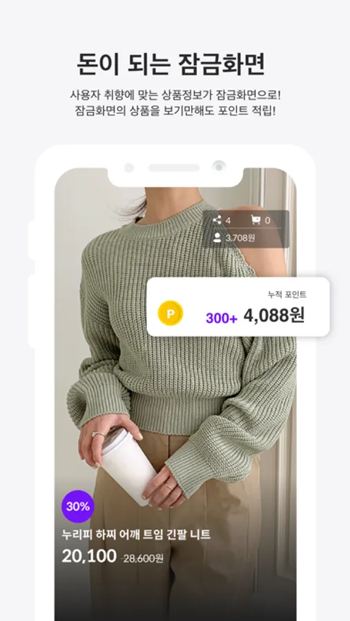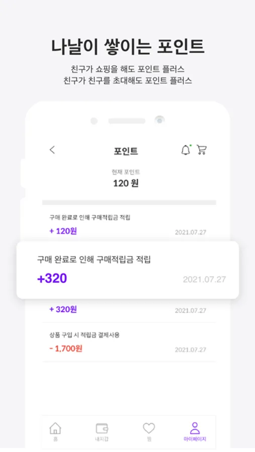 - 첫화면 상품을 보거나 친구에게 공유하면 포인트 적립