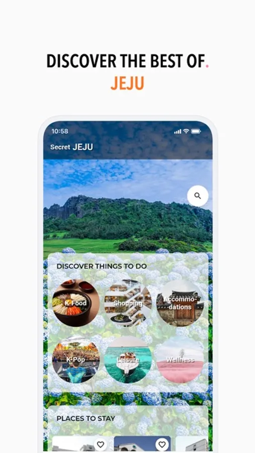 Jeju Island has the best natural scenery and is full of things to see and enjoy. Hallasan Mountain, the beautiful sea, and various recreational facilities await you. The Secret JEJU app provides a variety of Jeju information about Jeju to make traveling in Jeju more convenient and fun.