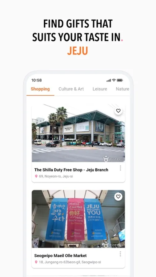 Search various shopping malls in Jeju right right away, from the latest duty free shops to traditional markets. Shopping mall information, information center, product detailed information, parking lot, etc. Now meet the products that suit your taste in one place.