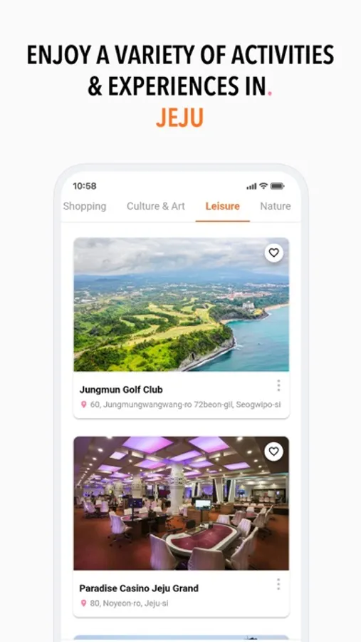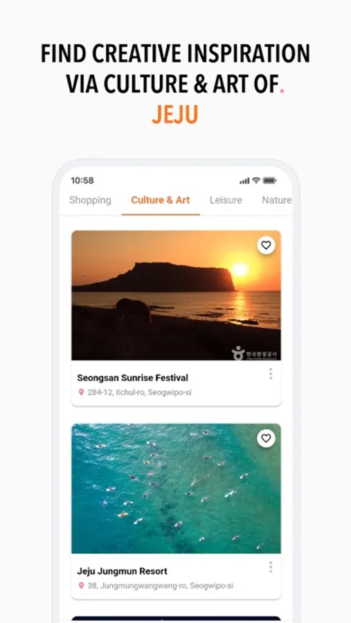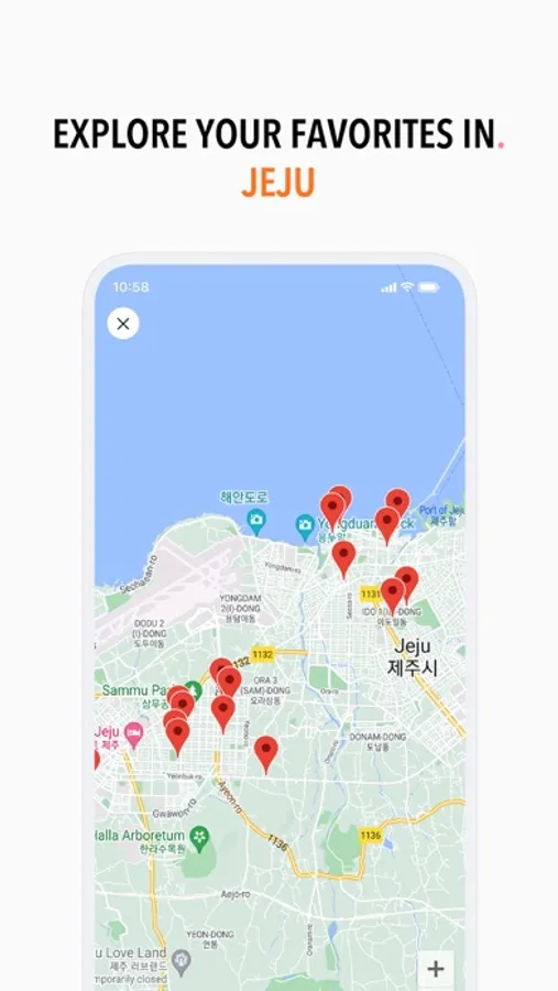 Find your favorites at a glance on a map. In addition, you can check the Favorites closest to your current location in Jeju or favorites in a specific area.