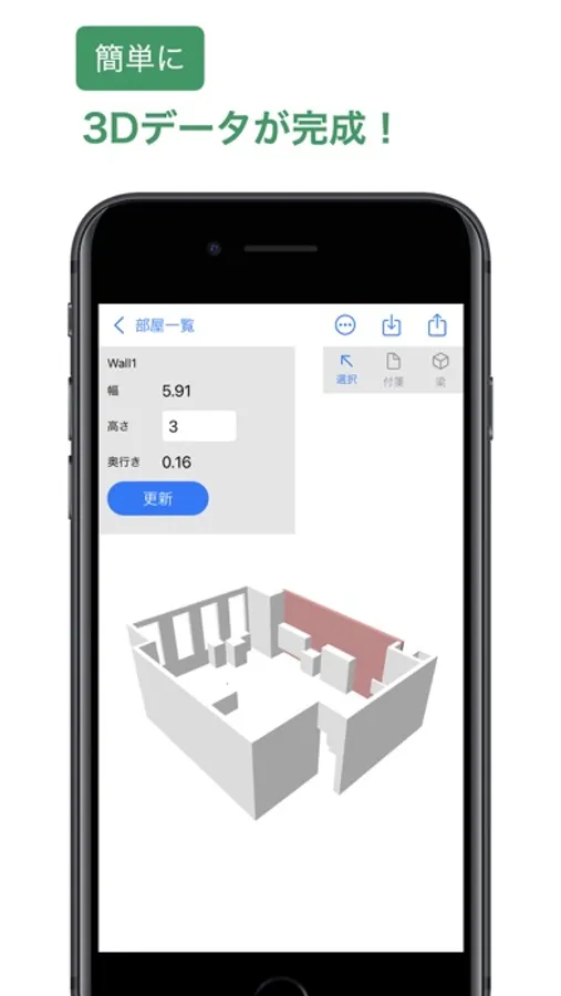 →付箋の追加、壁の高さ変更、梁の追加などの編集機能で、より多くの情報をもった部屋モデルの生成ができます