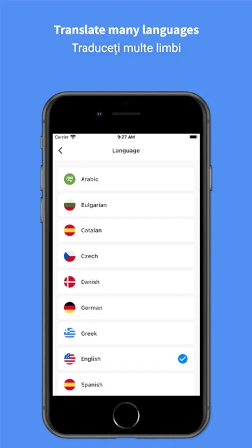 The voice translating feature translates to romanian and vice versa, translate text to voice with typing from keyboard.
