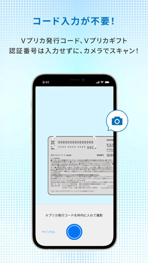 ③カメラからVプリカの発行コードや認証番号の読み取りができます。