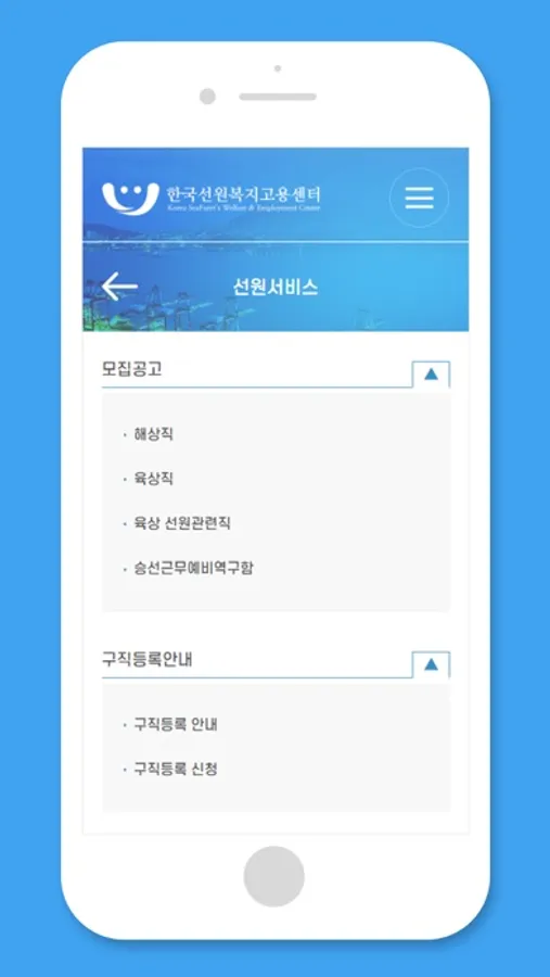 - 구직등록 : 구직등록을 하시면 선사에서 구인상세 검색을 통해 입사지원을 요청하거나 본인이 직접 원하는 선사에 지원 할 수 있습니다.