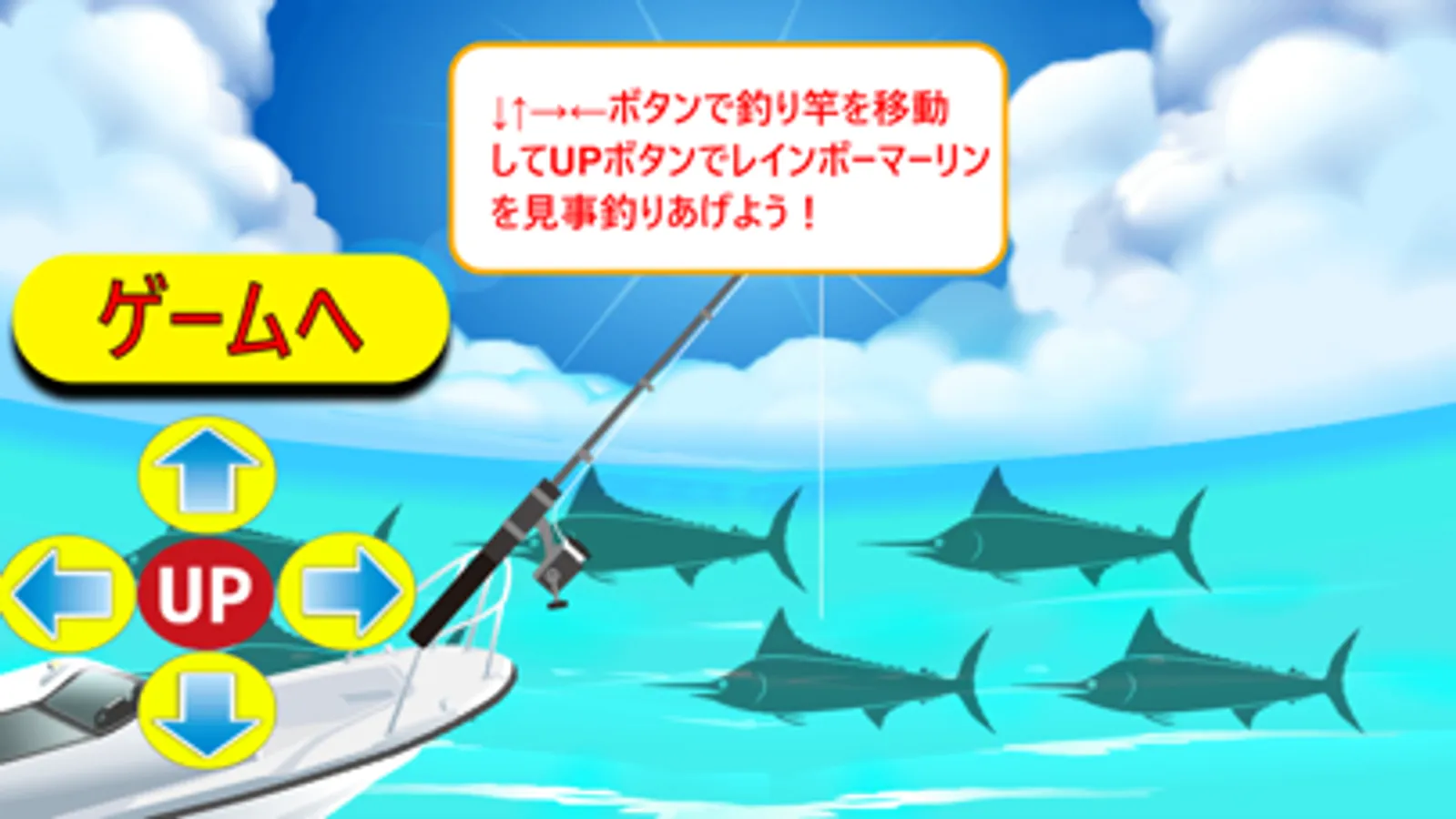 「上下左右ボタン」で釣竿を移動し、「UPボタン」でレインボーマーリンを釣り上げよう!