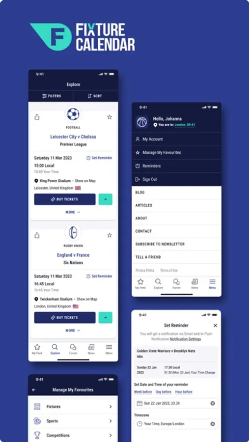 - Customisable reminders of the Fixtures you want to hear about, when you want them.