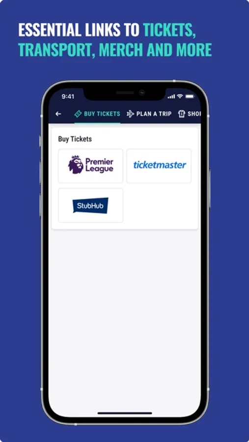- Links to everything related to your Fixtures, such as tickets, merch, travel, news and more.