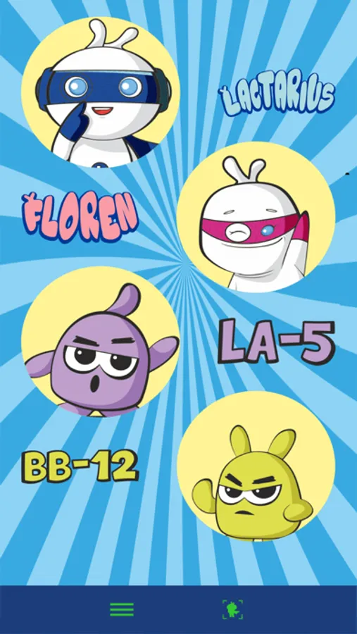 Attraverso un linguaggio semplice, fumetti animazioni ed audio e soprattutto inquadrando le action figures dei personaggi Lactarius, Floren, BB12 o LA5, singolarmente regalati all’acquisto del prodotto, I bambini potranno interagire con i personaggi attraverso la realtà aumentata. I simpatici supereroi che supportano la flora intestinale dei bambini contro l’attacco dei batteri cattivi li accompagneranno nell’apprendimento dei problemi intestinali spiegandogli le loro avventure e divertendosi insieme. L'app stimola la creatività immergendo i bambini nella magia della realta’ aumentata, permettendogli di scoprire gli eroi ed i loro contenuti.