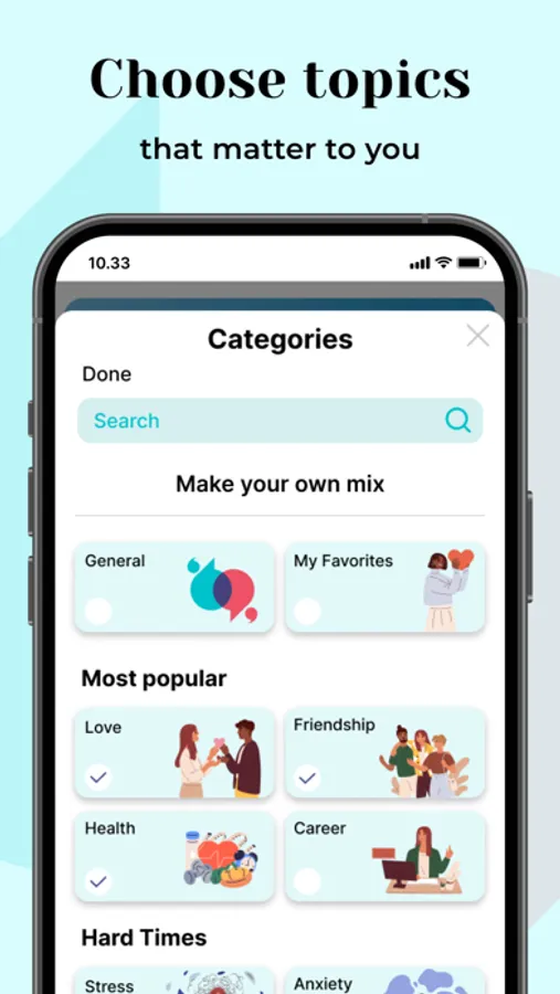 - Categories - Find out all categories that are available and check all subjects and topics that you are interested in (Health, Spirituality, Family, Personal Growth, Hard Times, Relationships Positive Thinking, and many more).