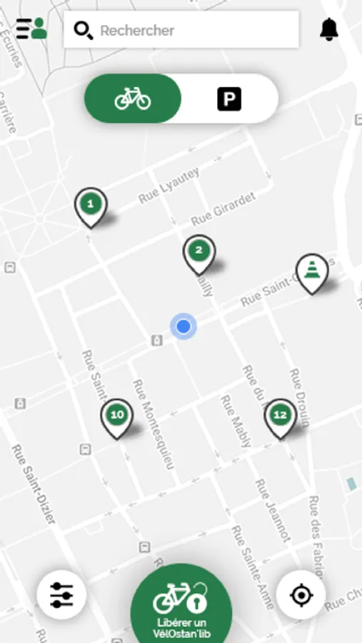 When close to the station, press « release a VélOstan'lib » and pick yours!
