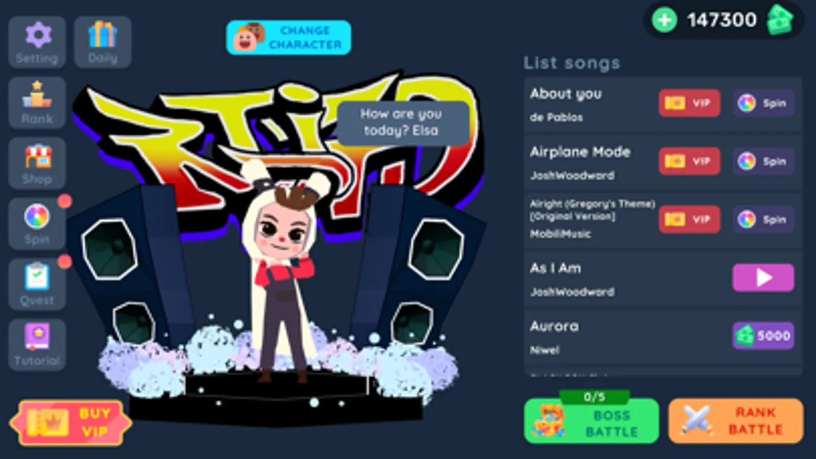 2. There is two mode of battle: Boss Battle and Rank Battle. Boss Battle is offline mode and you can earn Lucky Spin which give you have chance to get VIP characters. Rank Battle is online mode and you can earn Rank Points which make you become top 1 of Leaderboard