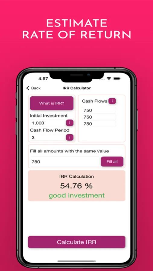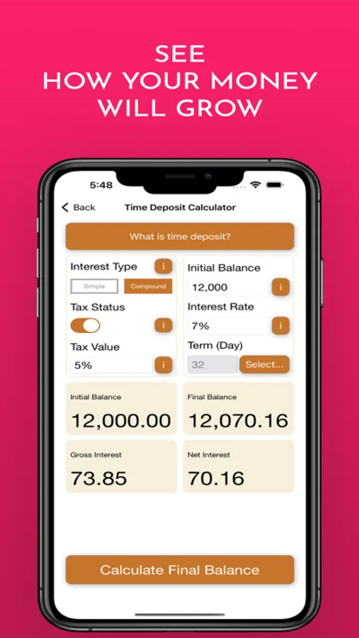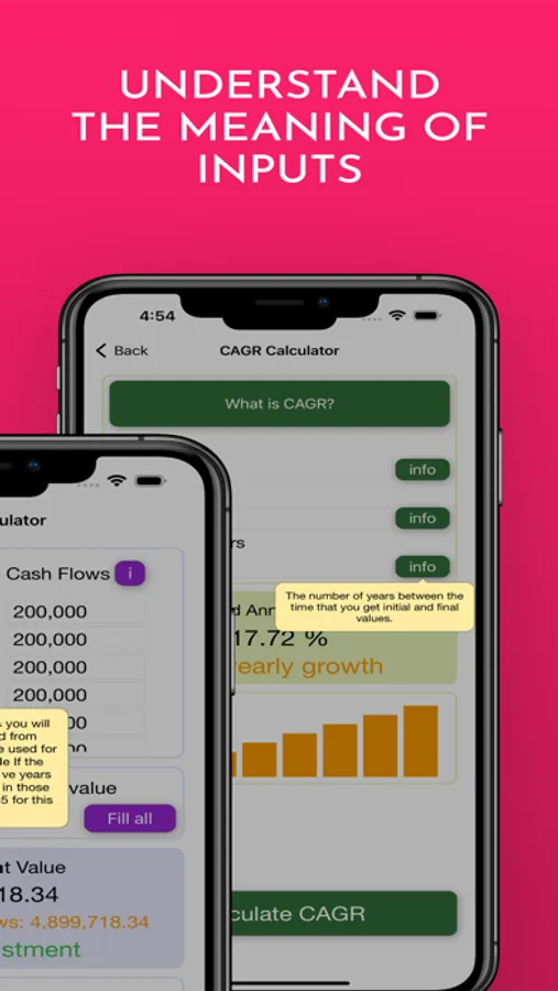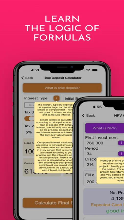 All calculations in the application solve many of your financial problems and play a guiding role for you. The application gives you information about what to use these formulas for and what the inputs mean when calculating. Thus, with the application, you will not only calculate, but also learn the working logic of the formulas in detail.