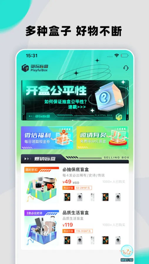 【多种盒子,等你来开】产品丰富多样,3C电子、手机数码好玩又赚,更有超划算惊喜组合款等你来拿
