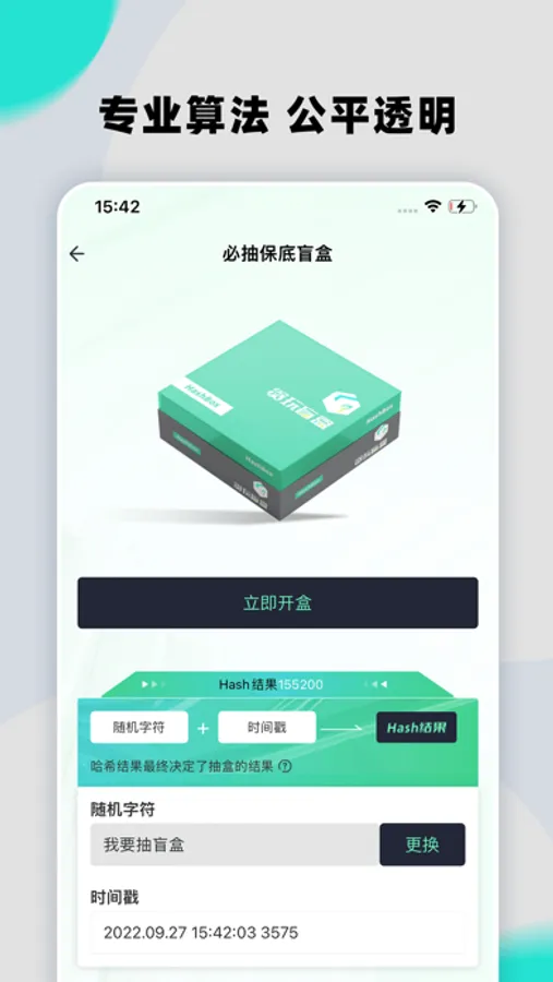 贪玩盲盒通过不可逆的哈希算法生成开奖结果, 确保玩家开盒时公开透明,让玩家体验开盒带来的趣味
