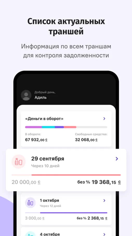 В приложении Вы можете оформить продукт "Деньги в оборот" и расплачиваться с поставщиками в рассрочку.