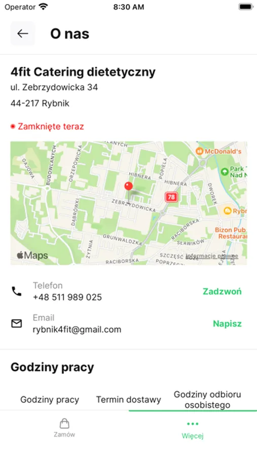 Oprócz zamawiania online aplikacja pozwala sprawdzić: