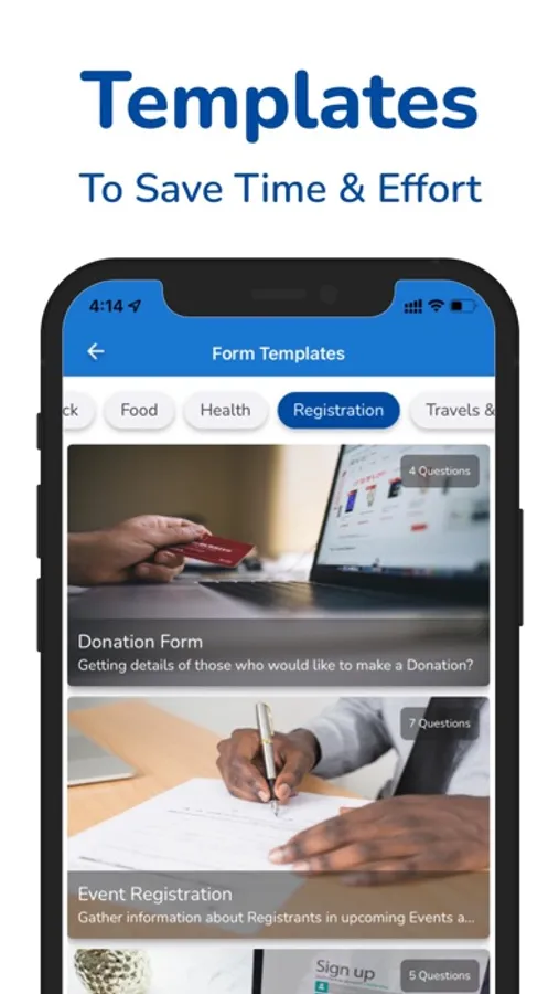 —The Templates feature offers a huge assortment of Templates for simplifying your job of form creation based on categories like Travel, Education, Food, Registration, & Health.