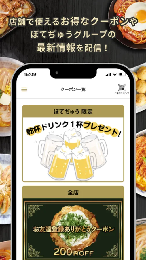 BOTEJYU Group公式アプリでは、会員登録により、お得なクーポン等をゲット出来るだけでなく、ご来店数に応じてステージがアップすると、更にお得なクーポンや優待特典等を貰う事が可能です。
