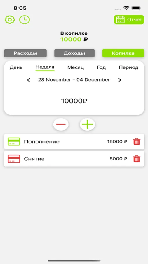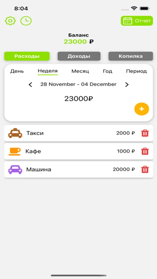 Detailed reports - easy-to-understand charts and financial overviews that help you assess the state of finances in a bank or credit account, as well as keep debt and cash finances under control.