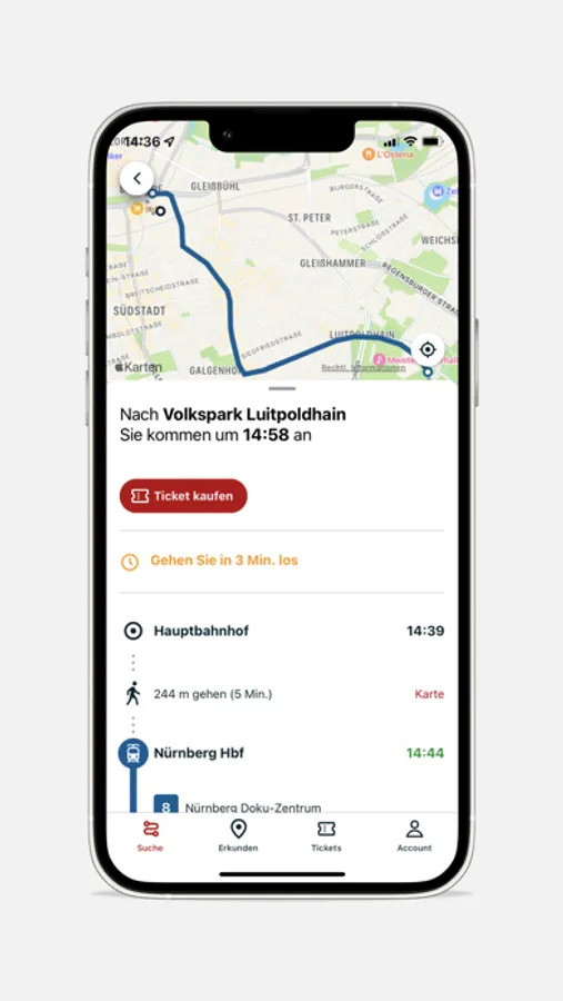 Überregional mobil: VAG.Deutschland liefert Fahrplanauskünfte inklusive des Fernverkehres und ein multimodales Routing mit Bike-, Scooter- und Car-Sharing innerhalb der teilnehmenden Regionen.