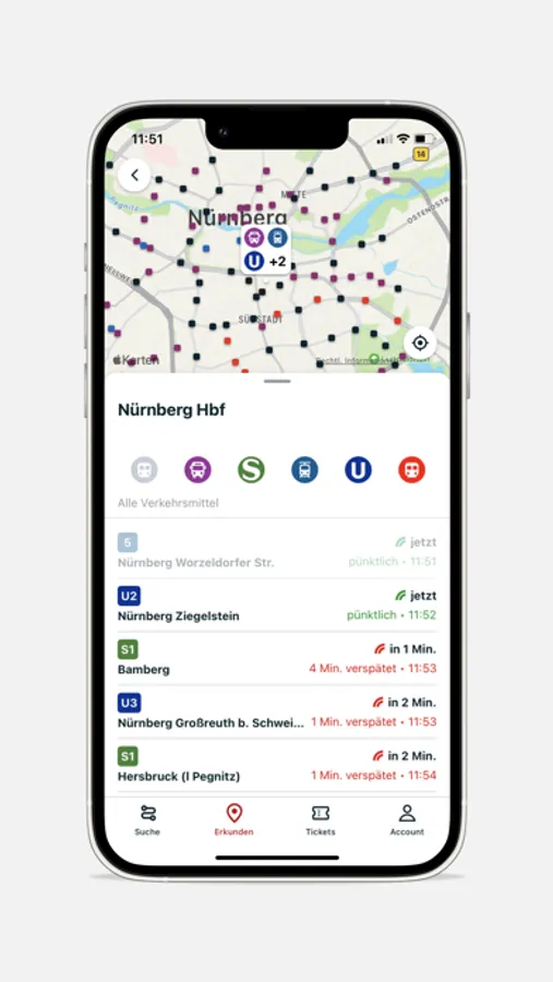• Multimodal: über den Routenplaner Empfehlungen für Wege zu Fuß, mit öffentlichen Verkehrsmitteln, Bikesharing, Scooter-Sharing und Co.