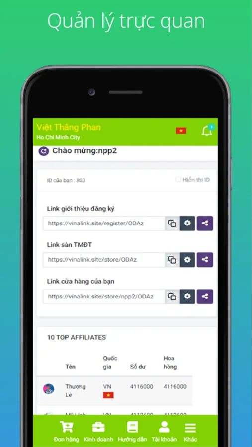 - Bạn có thể quản lý được số dư tài khoản, doanh số và tồn kho của mình chi tiết.