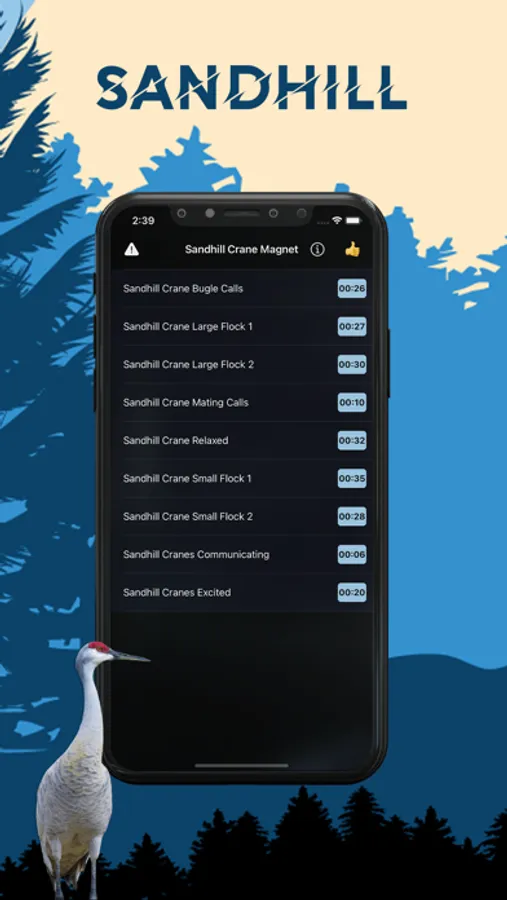 No longer do you need drag along bulky electronic sandhill crane callers. With this Sandhill crane sounds and sandhill crane calls app you can simply select from a large selection of different sandhill crane sounds and play them with a Bluetooth speaker setup or connect your phone to amplified speakers.