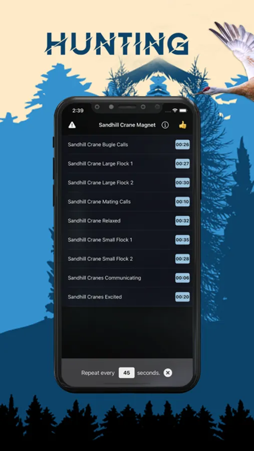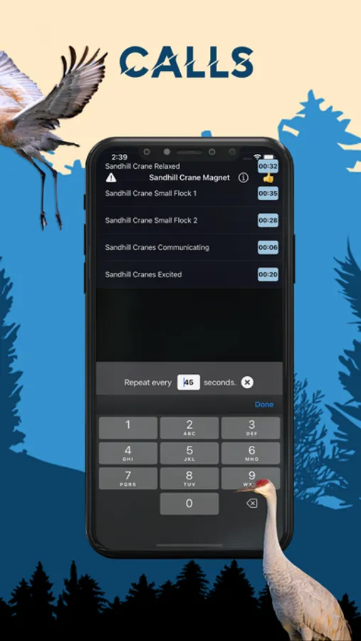 You can play the sounds individually and set them to repeat after the amount of seconds that you desire. Or you can manually tap different sounds create a deadly combination of calls that will work perfectly for sandhill crane hunting.