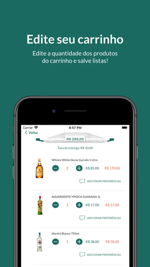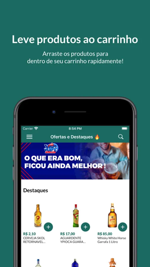 • Adicionar produtos no seu carrinho com um simples tocar e arrastar.