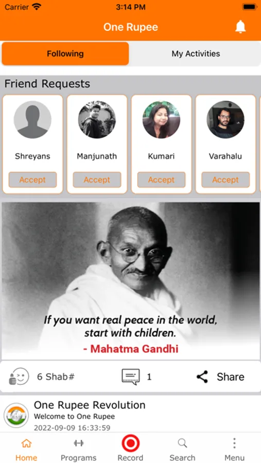 One Rupee App, is an initiative by One Nation to instill the culture of selfless giving in everyone and to participate in Nation Building.