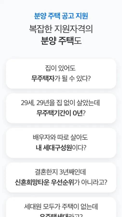 주택 별로 조건이 다른 임대 주택도 복잡한 지원자격의 분양 주택도 로드맵이 지원가능여부를 알려드려요.