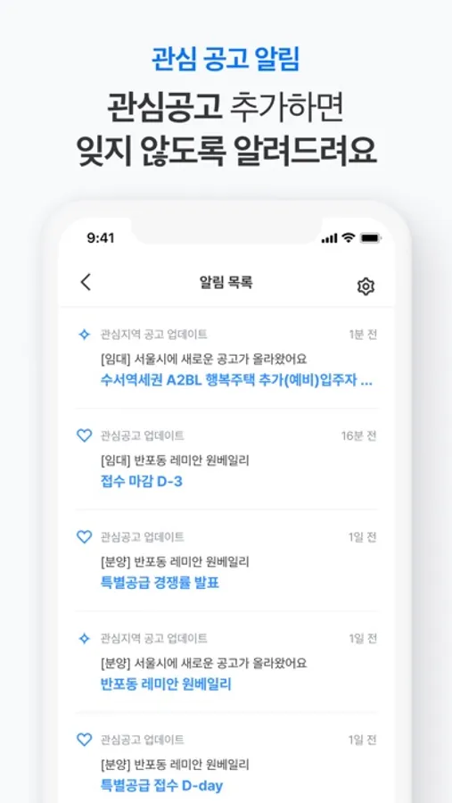 - 관심있는 공고를 관심공고 등록하시면, 청약 일정을 알림으로 보내드려요.