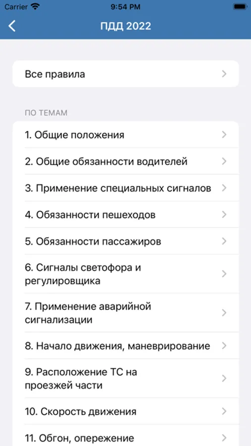 Приложение для подготовки к теоретическому экзамену ГИБДД