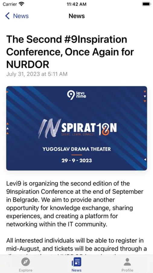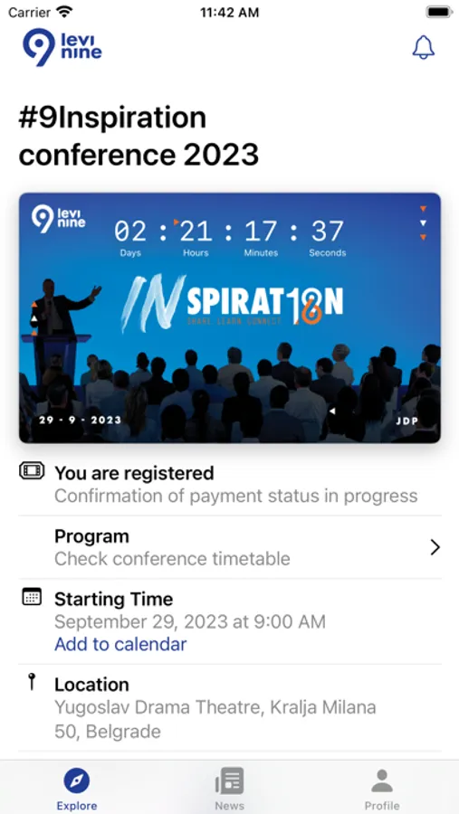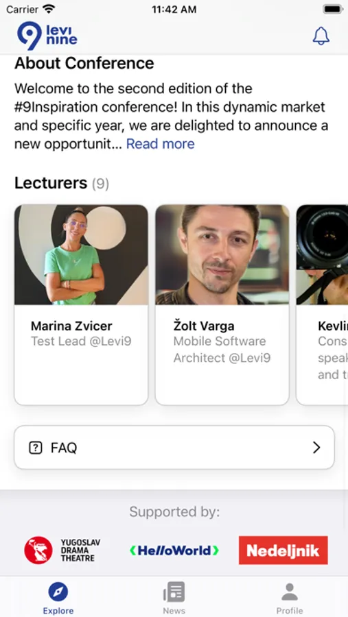 Levi9Inspiration is an official application for 9Inspiration conference that Levi9 is organizing on September 29th 2023, in Belgrade, Serbia. Users are able to see the conference program, read about the speakers and topics and see the conference-related news. From 14th of August, registration to the conference will be available through the app, as well as on the website levi9conference.rs. Other exiting features will be available for users on the event itself, including asking questions during presentations.