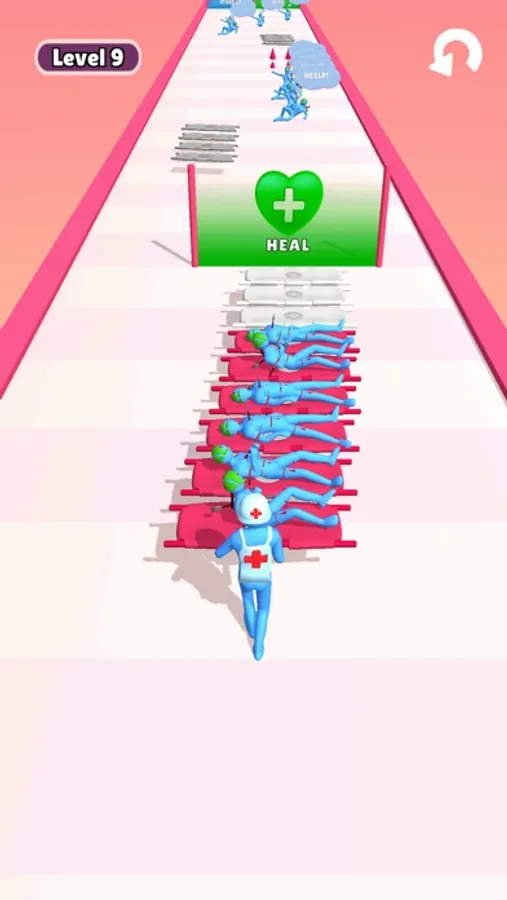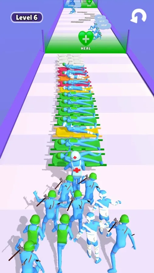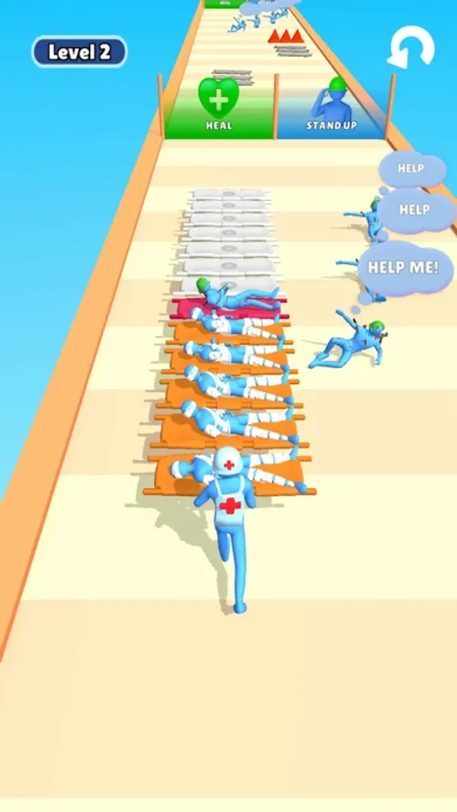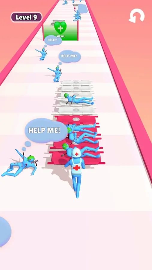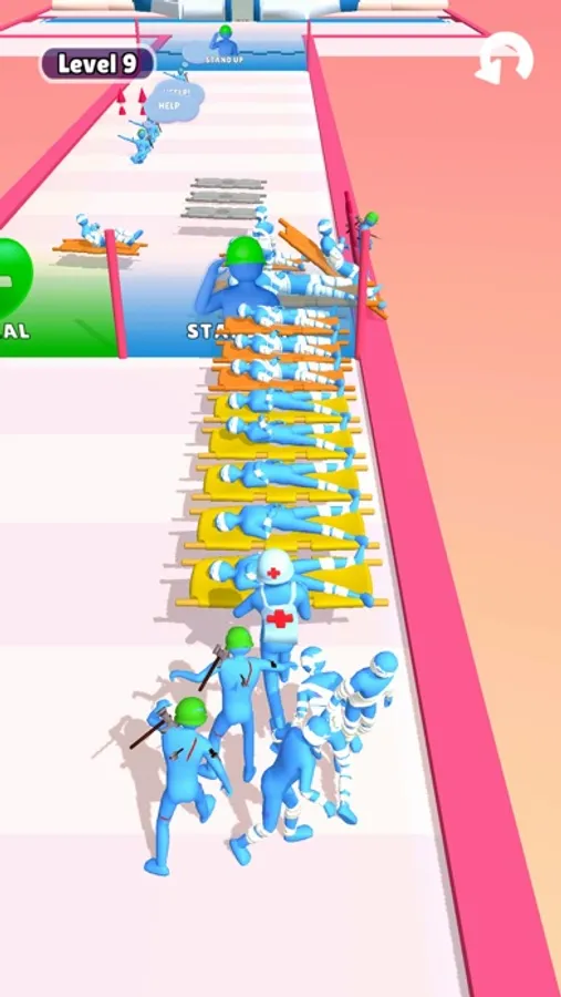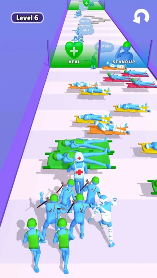 You are a medic. Pick up the stretchers around. Retrieve and heal wounded soldiers. If you wake up soldiers who haven't fully recovered, they'll be powerless. Build your tactics and fight to capture the castle. Remember, if you hit the obstacles, all your collectibles will be scattered and you may lose the game.
