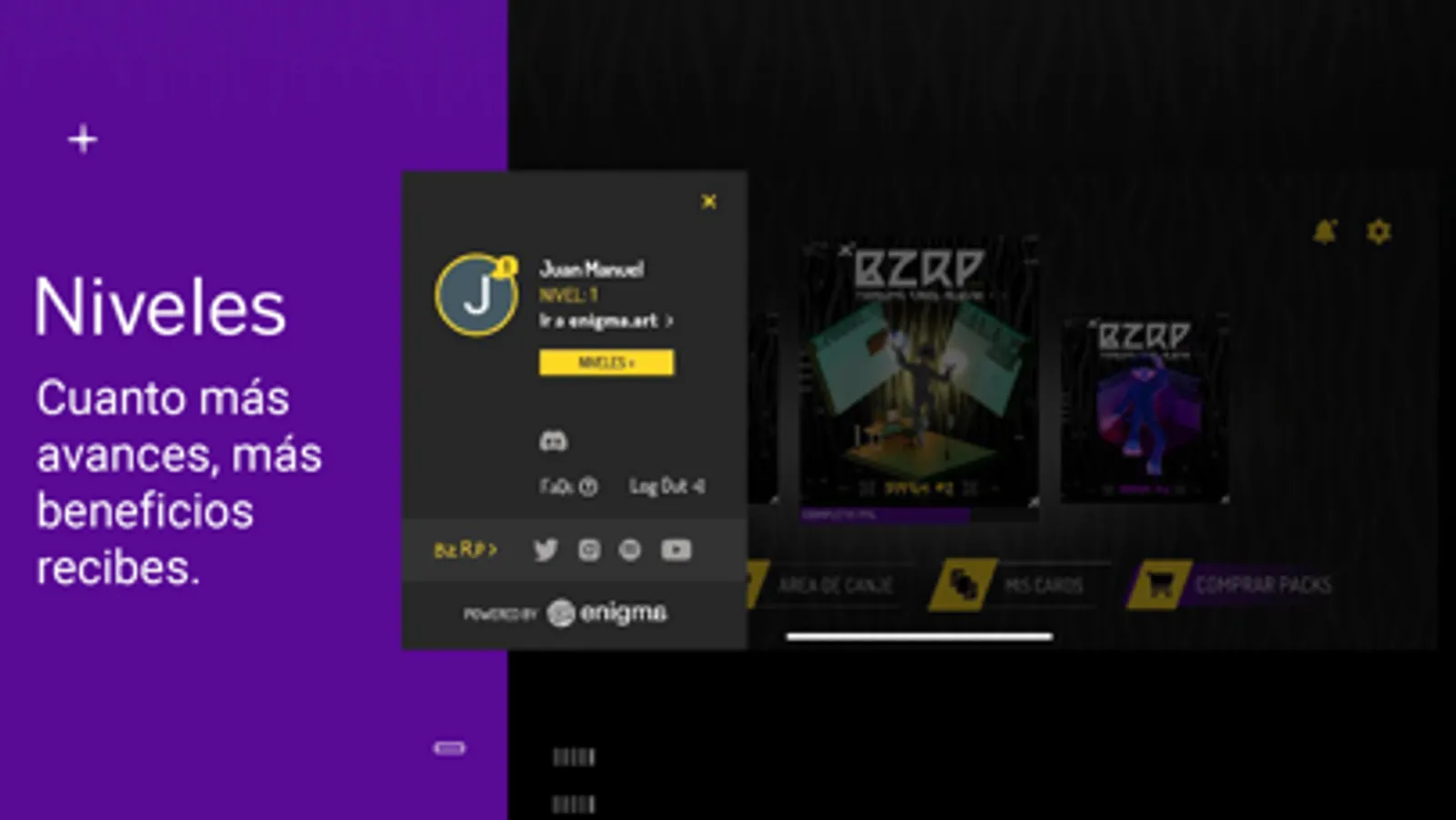Comienza en el Nivel 0, colecciona Cards, completa Sagas y avanza de Nivel para ganar un viaje para ver un show de Bizarrap en cualquier parte del Mundo y muchos más premios.