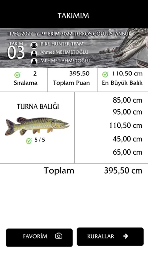 Bu skor tablosunda favori takımınızı takip edebilir yarışma anında Favori takımınızın balık skor bildirimleri alabilirsiniz.
