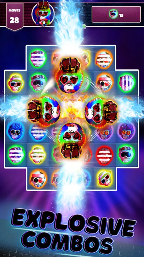 - Match 3 or more of the same color Cheeky Chimps in order to crush them.