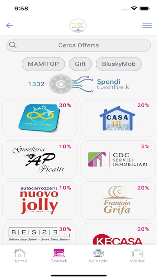 1) Scopri lista delle offerte pubblicate dalle aziende partecipanti al circuito.