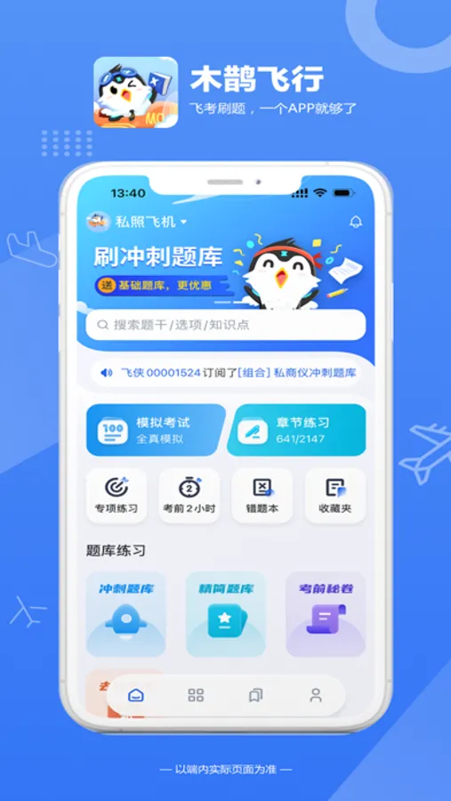 木鹊飞行是一款航空理论考试的刷题软件,为用户提供以下服务:
