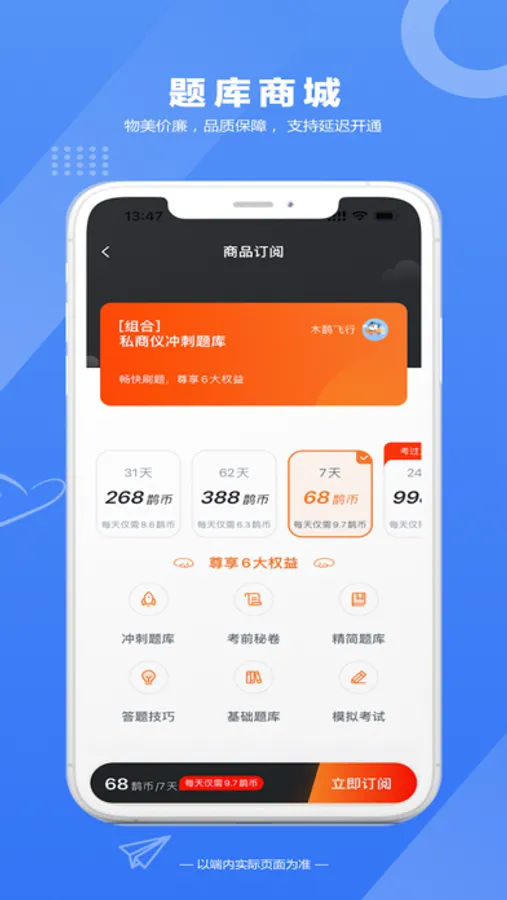 • 模拟考试:考前多模拟,考试不紧张。了解考试抽题比例,深度体验正式考试的题型和节奏,有效减少考试的紧张感、巩固弱点、增强信心。