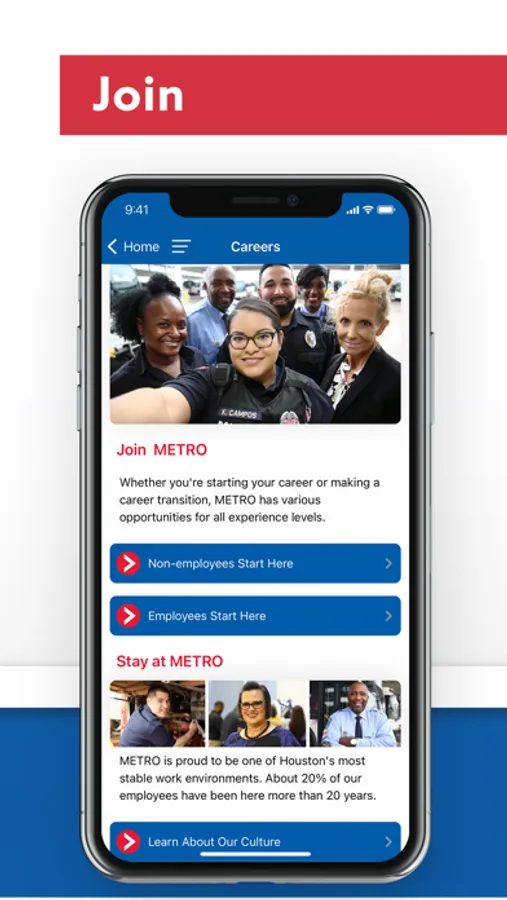 The Metropolitan Transit Authority of Harris County (METRO) serves the Houston, Texas region with safe, clean, reliable, accessible and friendly public transportation services. If you’re a METRO employee, the METRO-HR app provides you detailed information and resources about health, financial and other benefits. If you’re considering a career at METRO, you can learn about METRO’s work culture and how to access information about current opportunities we have available. For further assistance, please call or text METRO Customer Service at 713-635-4000, or visit our website at RideMETRO.org