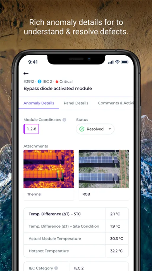 Zeitview Inspect app enables to locate, verify and resolve thermal anomalies of solar assets reported through Zeitview's aerial thermography inspections. The app provides tools to support various activities to make your solar assets efficient and reliable.