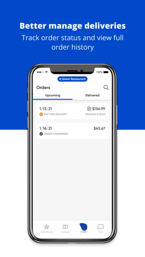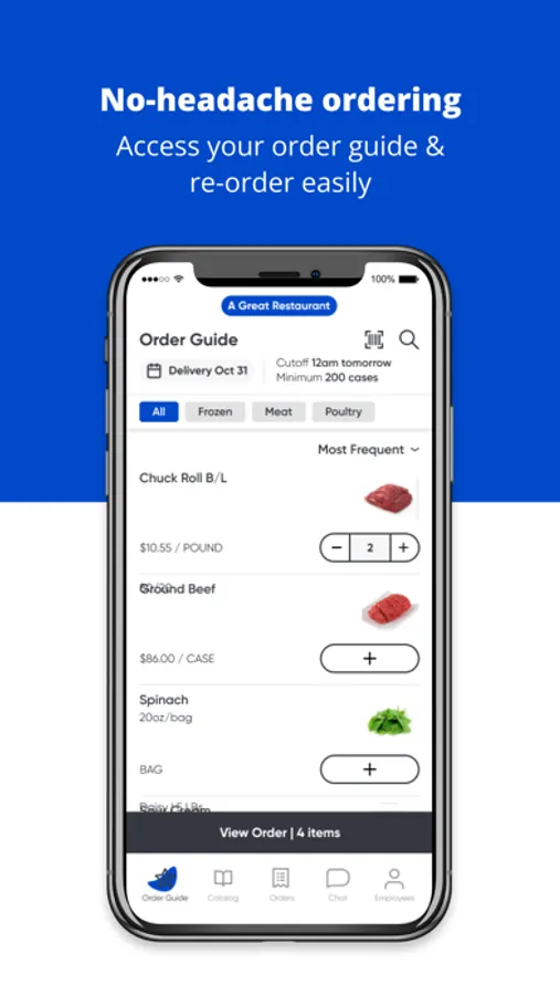 Our mobile app lets you search our complete product catalog, manage and update your ordering guide, and buy what you need at the moment you need it. It’s part of our commitment to giving you an ordering experience you’ll love.