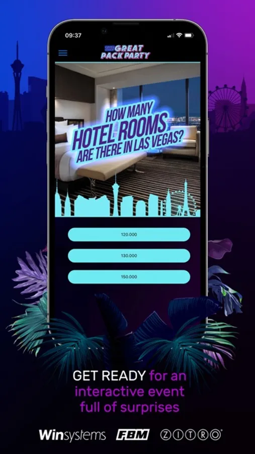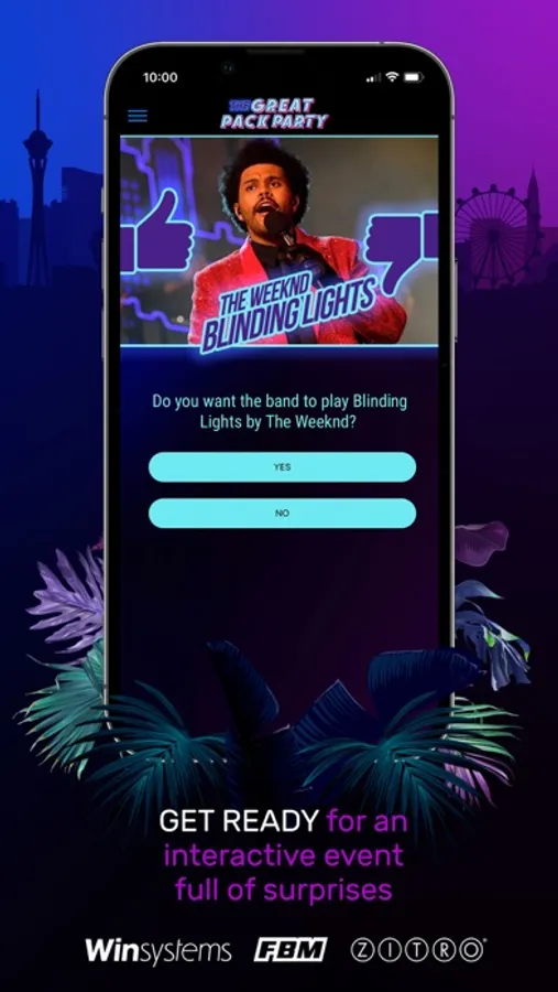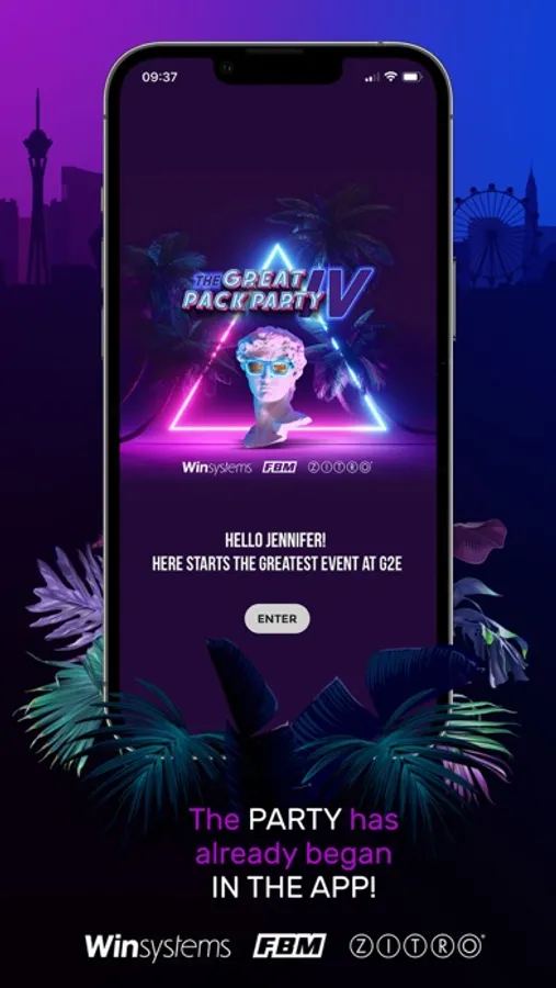 Download now the exclusive app of the party, that will allow you to play games, vote, receive your