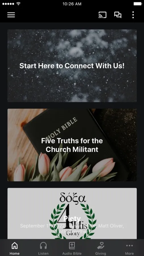 This app will help you stay connected with the day-to-day life of our church. With this app you can: watch or listen to past messages; stay up to date with push notifications; share your favorite messages via Twitter, Facebook, or email; and download messages for offline listening.